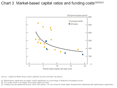 target is 15%. Now while I think it is unlikely that increasing bank capital to extraordinarily high levels will be necessary or sufficient and much work remains to work out what of the optimal amount for each bank and in the system as a whole, this simple calculation seems to imply that the risk of